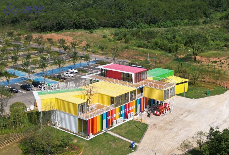 集装箱游客中心由黄、绿、紫、白4种主体色彩的集装箱组合而成,颜色鲜明欢快更显活力热情。