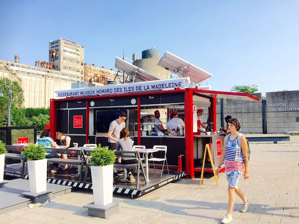 在加拿大蒙特利尔,当你走过MuvBox餐厅集装箱时,它被涂成醒目的红色,会立即吸引你的目光。