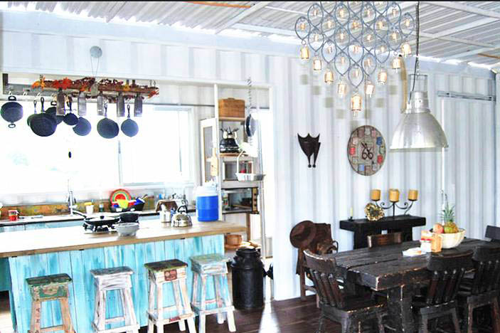 这是一家来自哥伦比亚的民宿,其利用了25吨以上的废旧金属(包括四个40英寸的集装箱)和独特的古董装饰家具组合成别具一格的房屋。