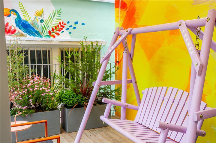 露台上种满了绿植,让你如同置身花园一般美妙。为了装饰周边环境,墙面上还有各式各样色彩缤纷的涂鸦,甚至还有秋千为这里增添着一份天真浪漫的气息。