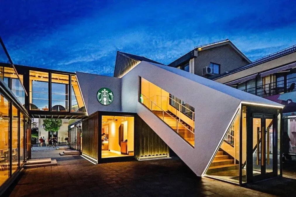 星巴克集装箱概念店,由6个极具工业风的集装箱交叠穿插构成