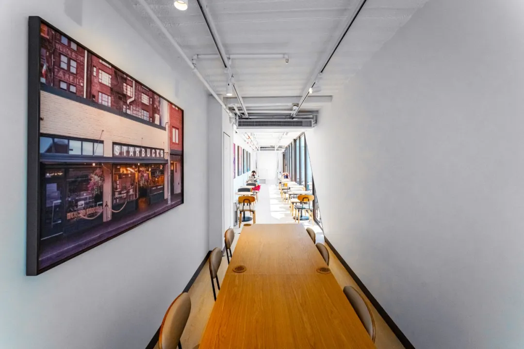 集装箱的尽头则是一处很适合开会办公的小型会议室,墙上挂着历史上第一家星巴克的照片,你可以一窥历史与现代之间的文化交流,感受漫长岁月的变迁。