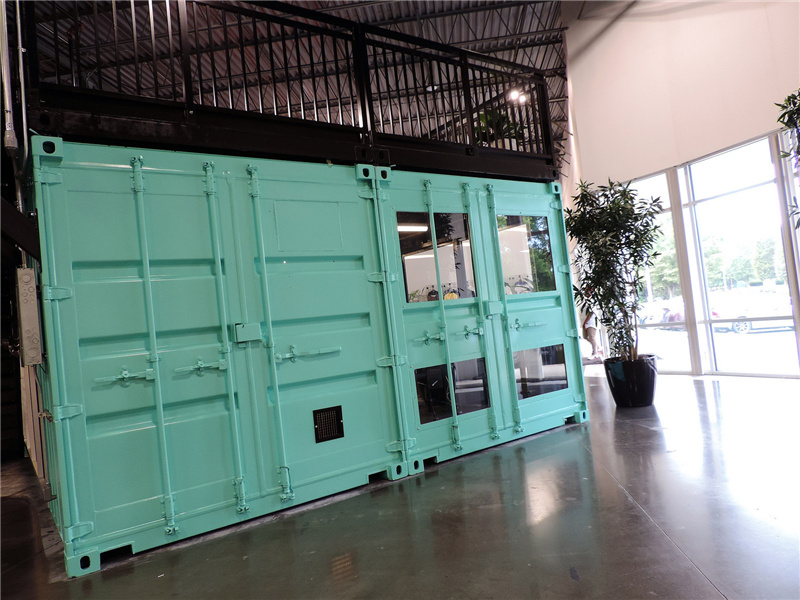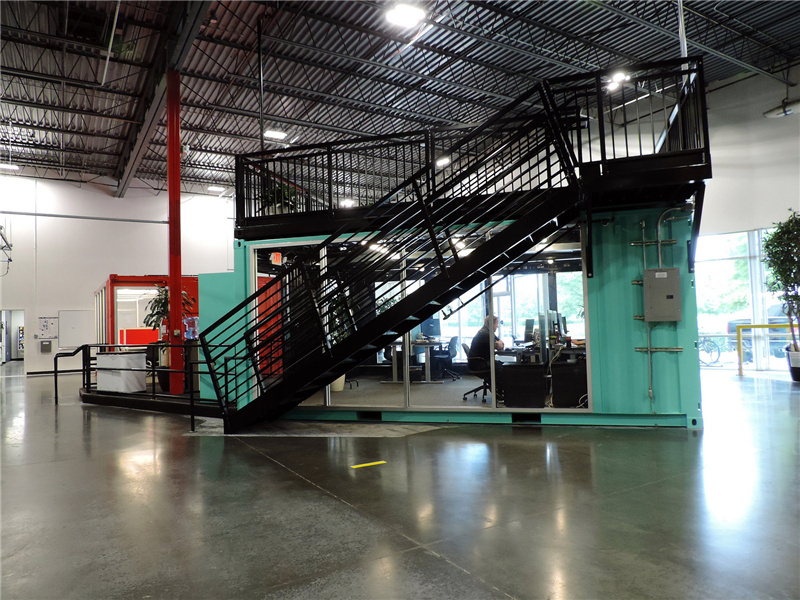 因此它选择将办公司建在了集装箱里,即便是在室内。