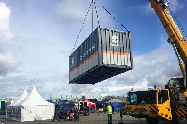 利用深灰色集装箱搭建的活动展厅,也是同样的迅速强大~!