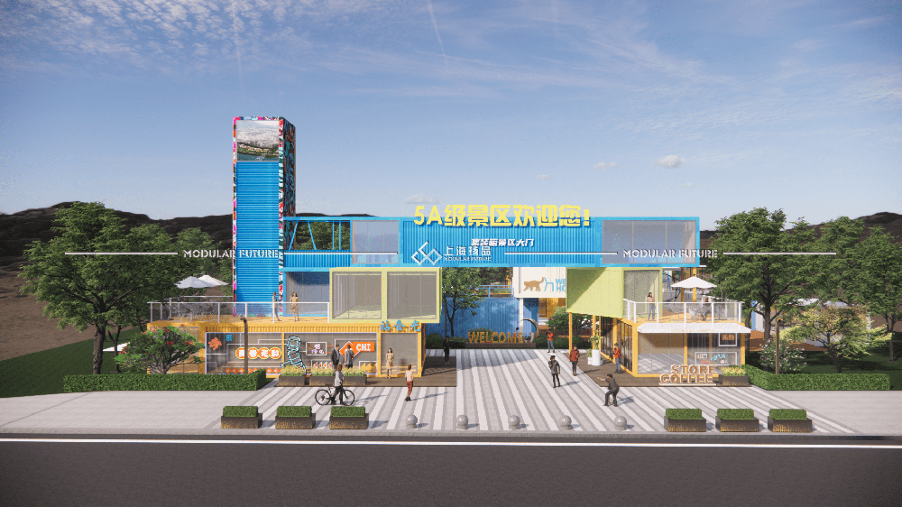 无论是山水风光还是文化古迹,集装箱可以通过色彩、图案和装饰等设计元素,将门头与景区特色完美融合,为游客提供独特的入口体验。