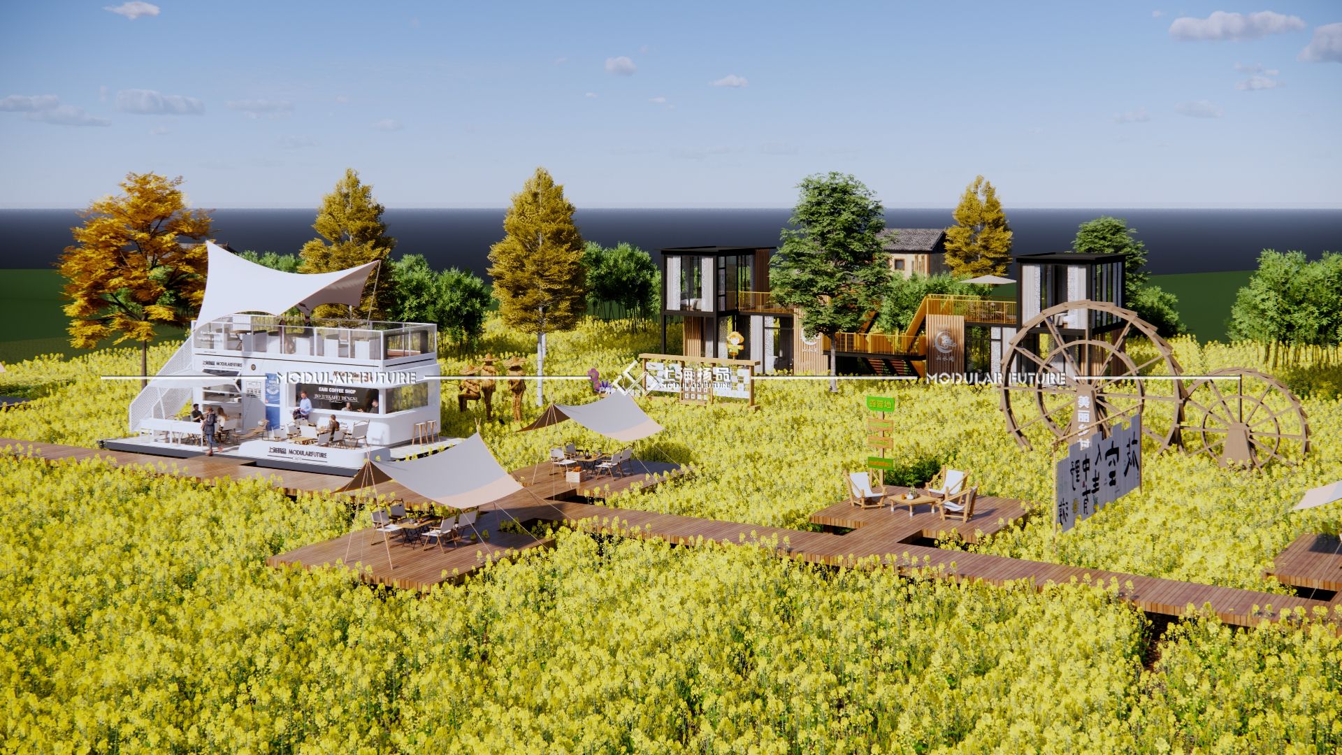 综上所述,采用集装箱打造商业场所,如营地咖啡馆、卫生间和餐厅等,为油菜花赏花游客提供了便利的服务,并与自然景观融为一体,成为了吸引游客的热门去处。